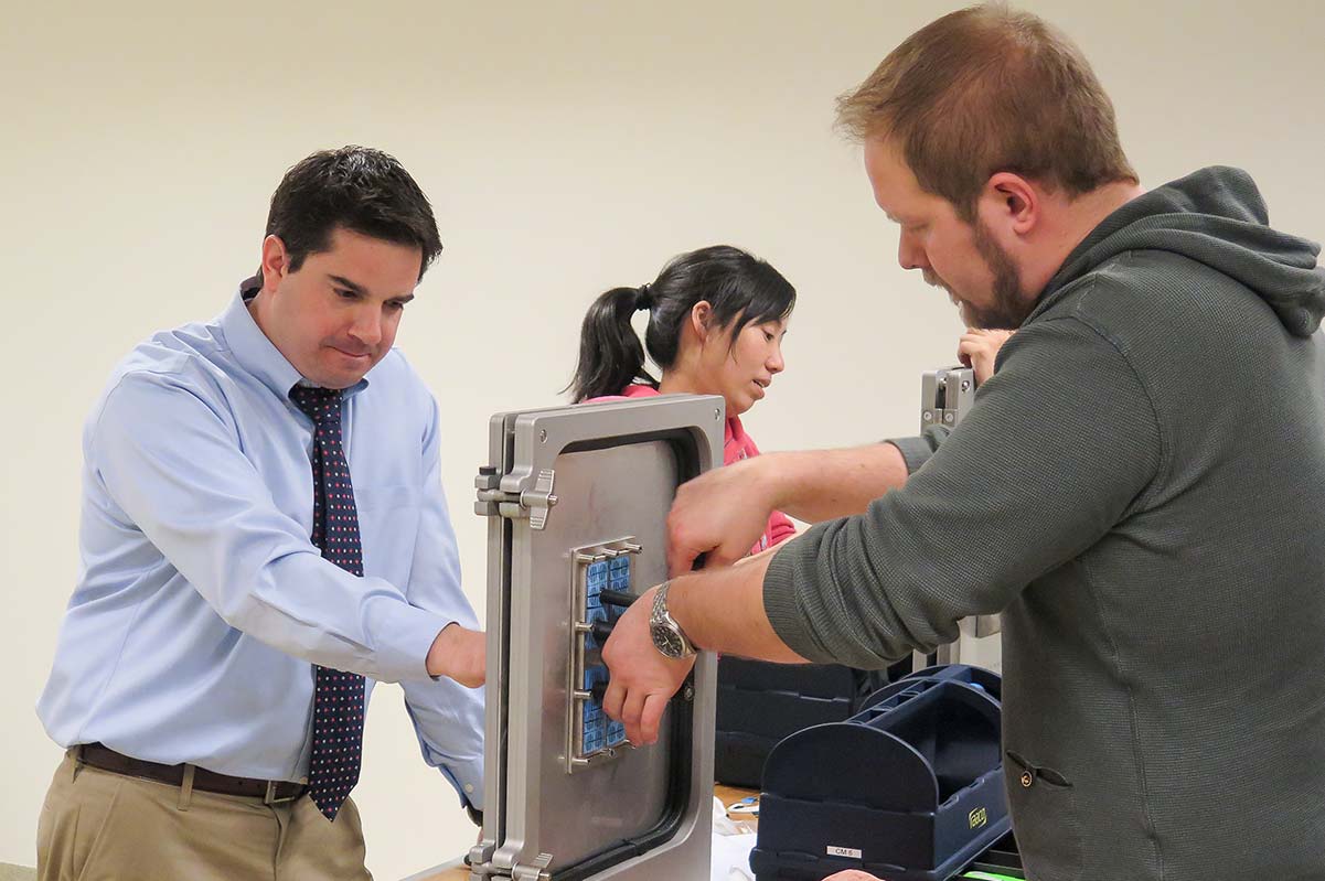 “这是防止组件掉出的一个安全方法。”Mike Sosbe 说。“我一直都会再利用空的模块盒,在准备好模块要进行安装后将它们按照正确顺序一起放到盒子里。这加快了安装过程,因为所有模块在盒子里都准备就绪了。”