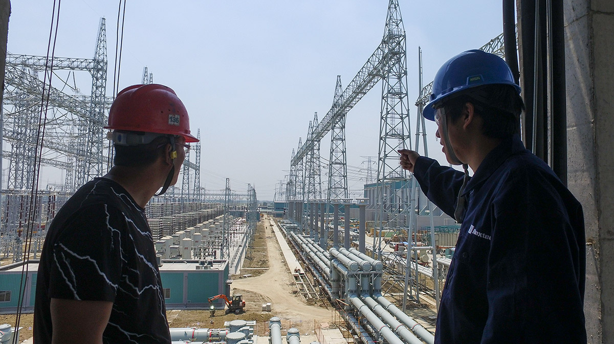 中国江苏省的 ±800 kV 变电站建设