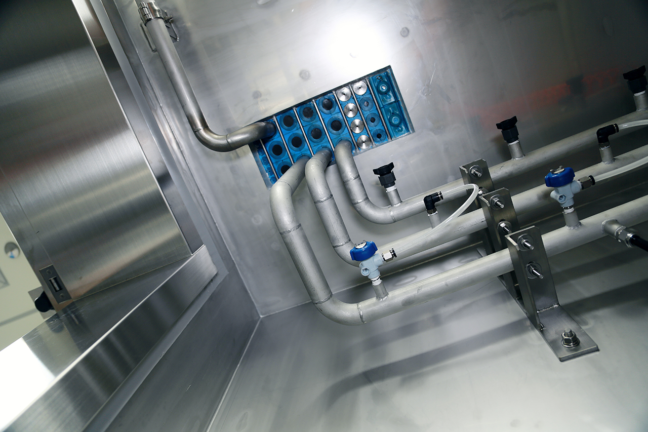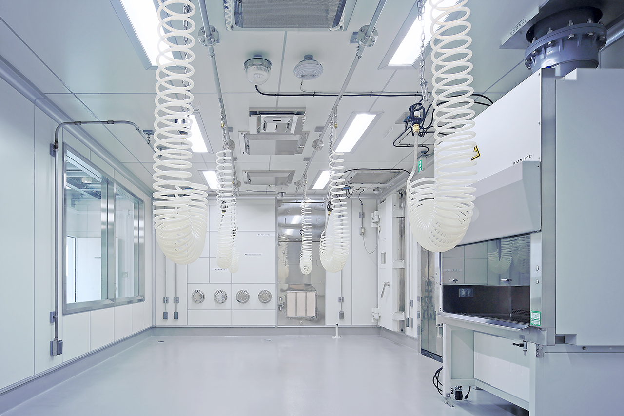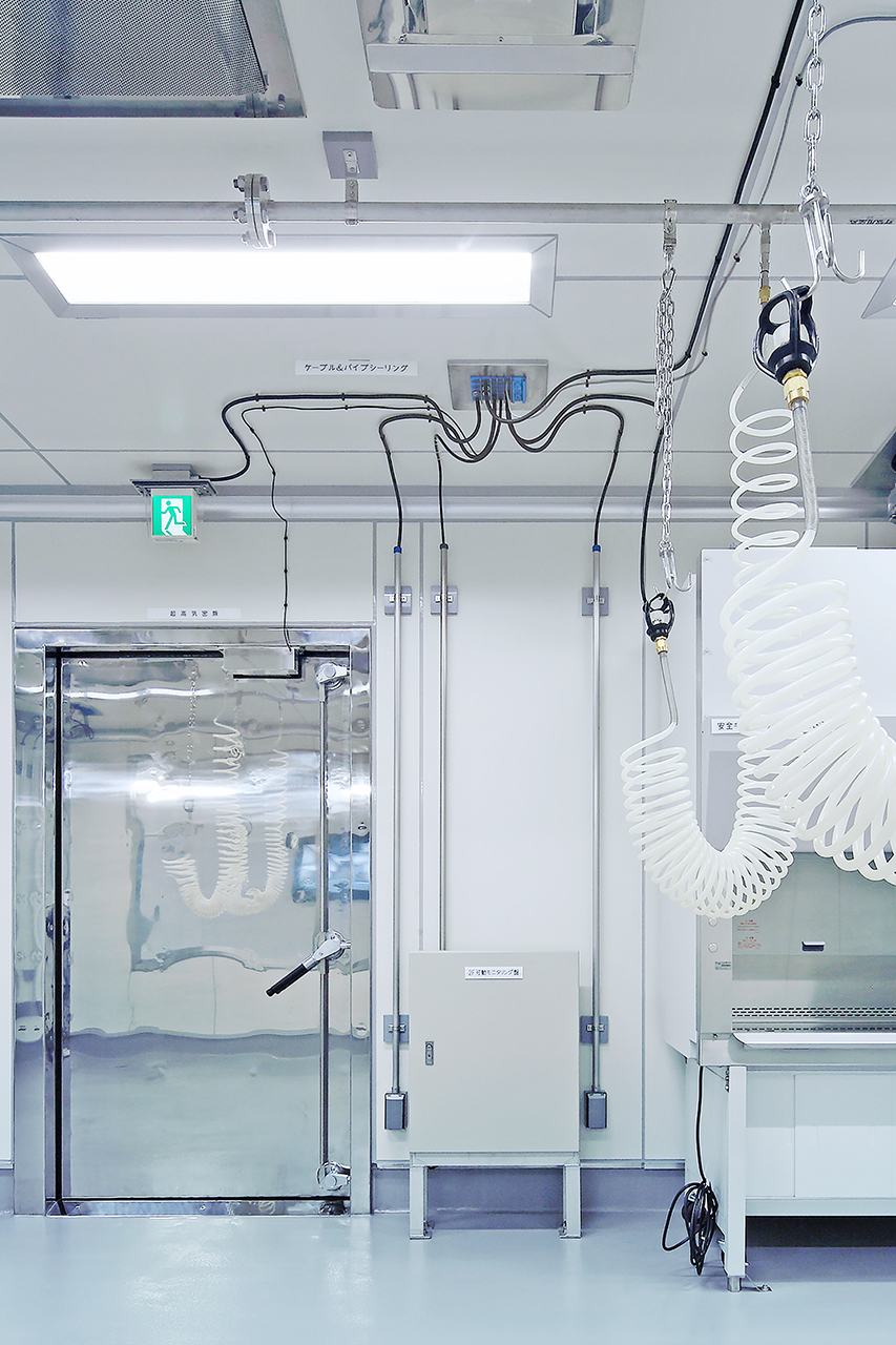 Takenaka 设计并建造了封闭测试设施,向再生医学、生物医药和传染病防治领域内的客户展示如何实现终极的安全水平。以嵌缝材料密封的电缆和管道穿隔系统已经成为无菌室和封闭室的水渗入和颗粒外逸事故的主要原因,因此 Takenaka 全力寻找能够解决这一难题的认证解决方案。