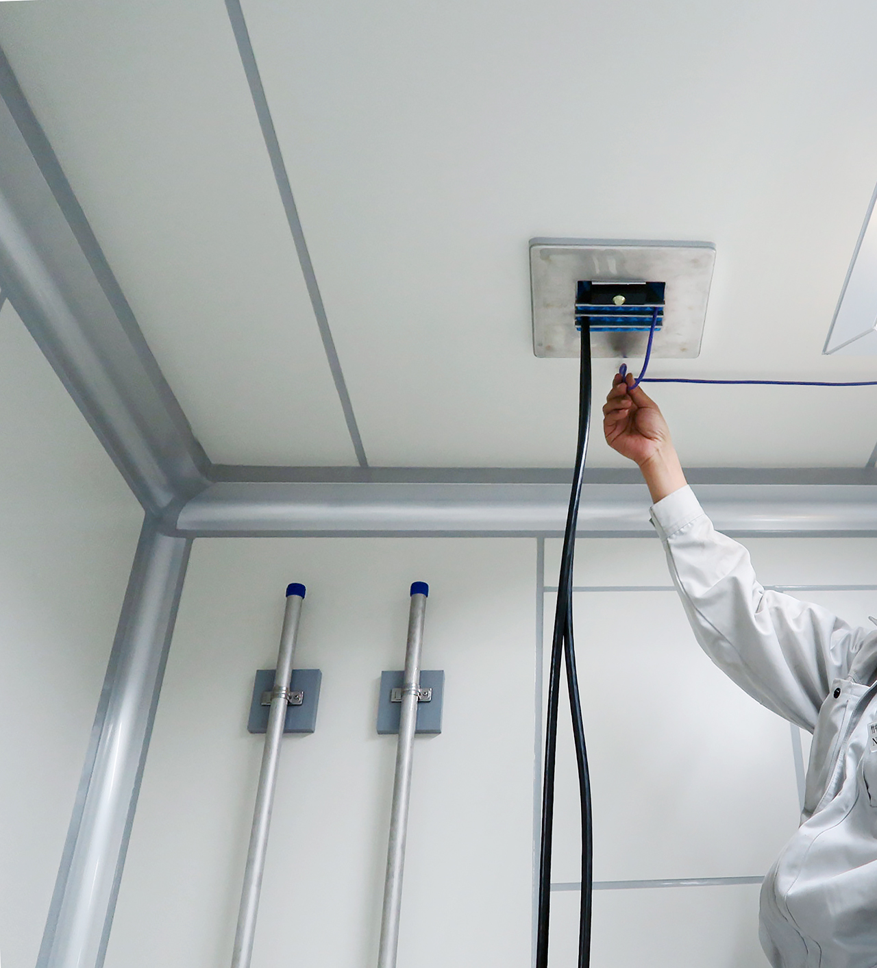 Takenaka 正在研发室内压力和气流的先进控制技术。通过使用 酷游KU游官网 密封系统,他们能够在各种气密性水平下做实验。酷游KU游官网 穿隔系统的适应性很强,能够对幕墙、板材吊顶和净化淋浴房中各种规格的电缆和管道进行高效密封。此类穿隔系统还支持设计变更和增加电缆、管道与设备。