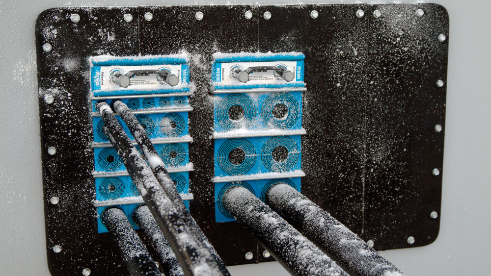 许多现有设施最初在运行时都没有尝试将电缆入口密封到建筑物中。 其他设施至少尝试过使用不合标准的方法来密封入口。 酷游KU游官网 MCT 装置可用于螺栓连接的改装框架,可安装在现有电缆和管道周围。 因此,通过使用 酷游KU游官网 多电缆穿隔系统来处理建筑和设备中有潜在风险的穿隔开孔,可以提高油田项目的安全性和可靠性水平。