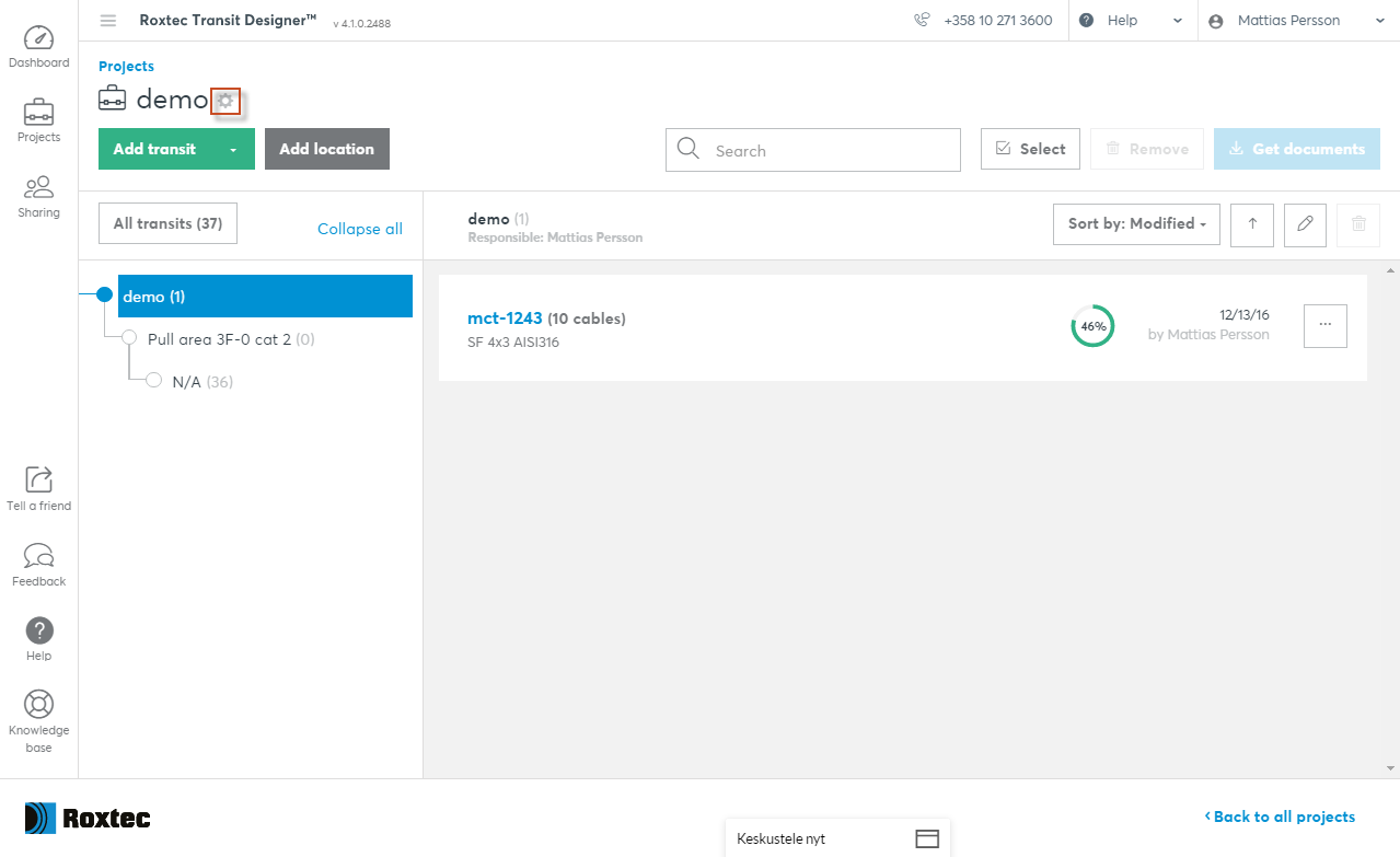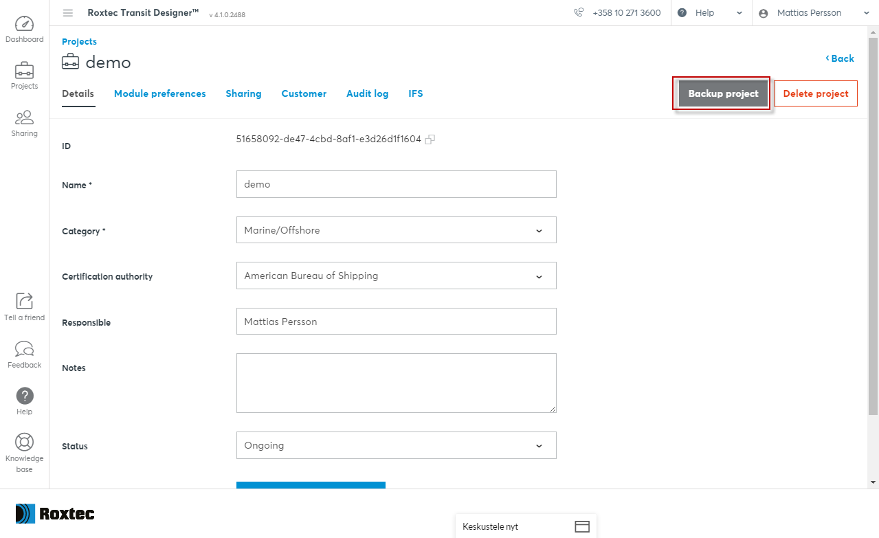 您可以在项目的设置部分中创建自己的离线备份文件。要访问项目设置,请单击项目名称旁边的齿轮图标。