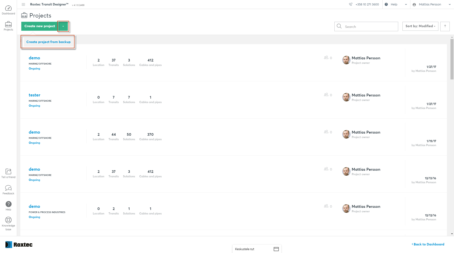 现在您可以根据此文件创建新项目。为此,请单击“create new project”(创建新项目)按钮中的箭头,然后选择“create new from backup”(从备份创建新项目)。